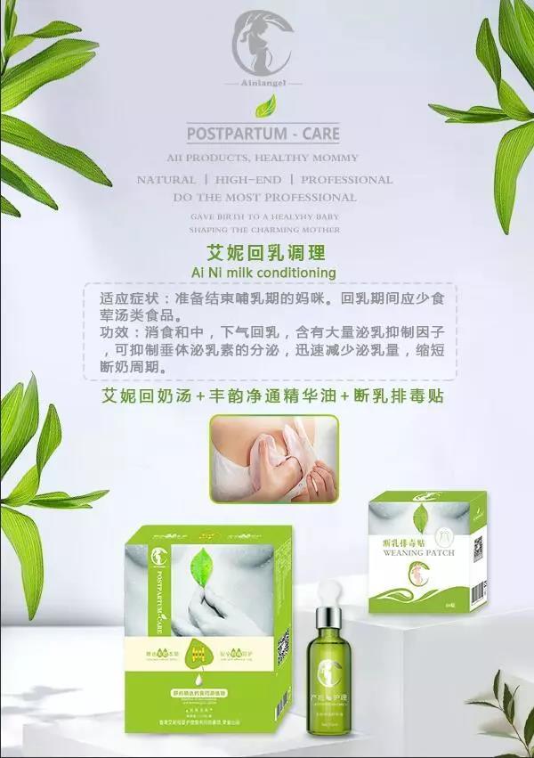 艾妮回奶汤:消食中和,下气回乳,迅速减少泌乳量,缩短断奶周期,杜绝断奶期间的乳房冲涨、胀痛、乳房肿块、硬结,并可减轻哺乳后乳房下垂及乳房变形。