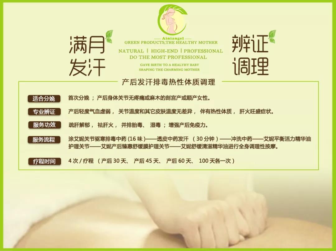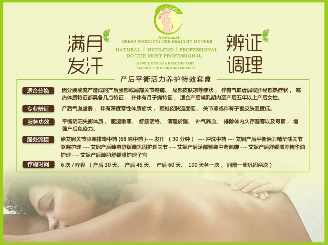 满月发汗法是根据产后受风、受寒、受凉为病因所引起的产后月子症状,如产后头痛、腰背痛、全身关节痛、肌肉酸、团、麻、疼痛、畏寒怕冷等诸多病症。
