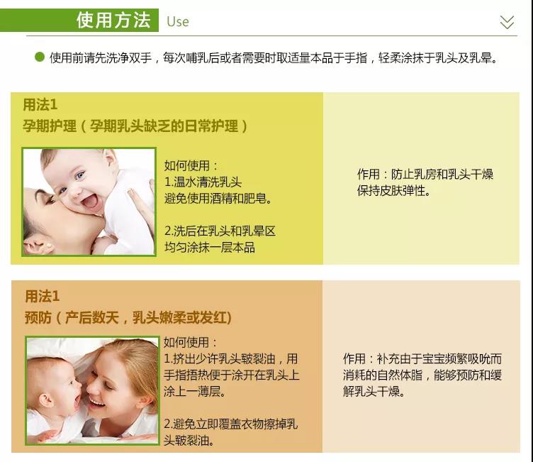 4、养护:每次洗澡按摩乳房,清理乳头之后,都要涂抹一些润肤霜,给乳头涂抹上艾妮乳头皲裂修复油,以滋润保护乳头周围皮肤。
