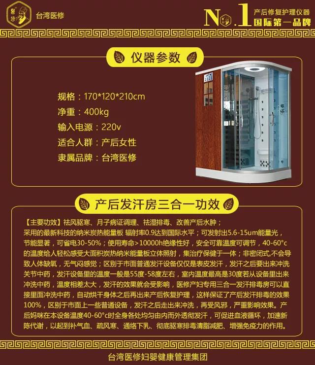 采用纳米碳热能量板发热原理,由内到外透彻,区别于市面上表皮发汗设备,不以出汗为目的,是为了将骨缝内的风寒湿邪彻底排除体外,预防以及治疗月子病症。